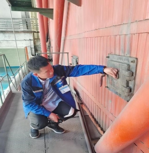 郑宇在观测炉膛燃烧情况