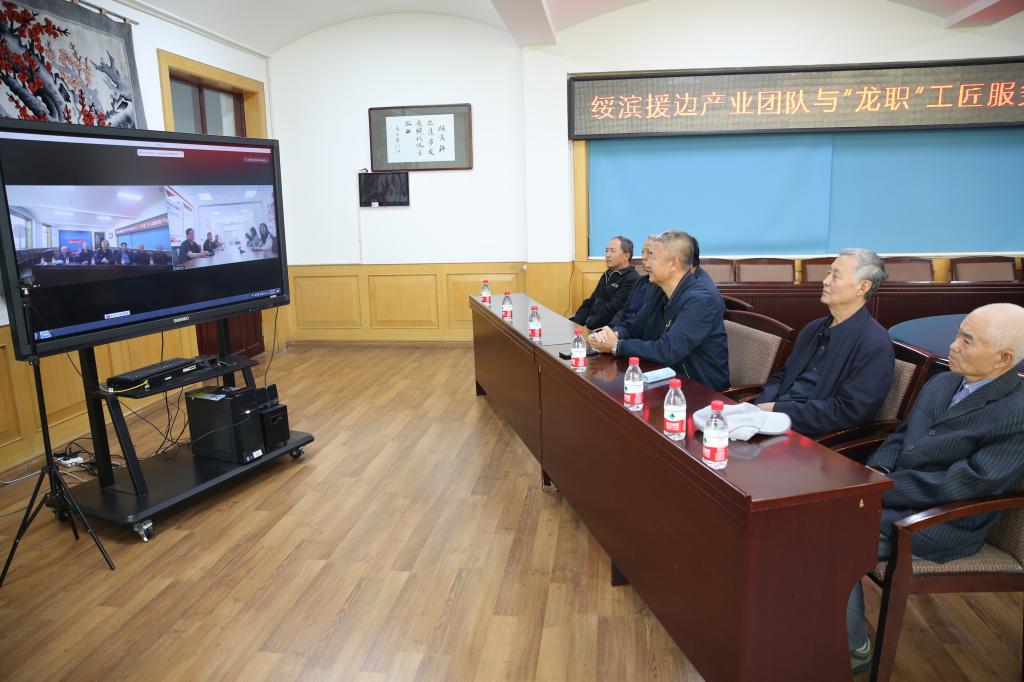 ▲“龙职”工匠服务团专家现场解答绥滨援边产业团队成员提出的问题