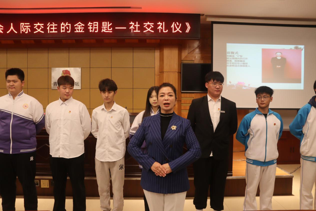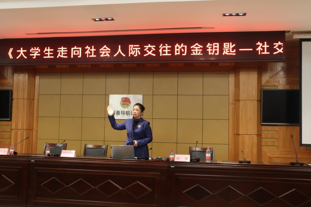 为推动文明礼貌礼仪教育,传播礼仪之风,培养和谐校园文明风尚,展现金年会学生良好的文明礼仪风采。10月16日晚17:30分,校团委在清华楼报告厅举办第55期“青春导航讲坛”,本期讲坛由中国形象礼仪行业注册形象礼仪名家讲师刘璇为同学们作题为《大学生走向社会人际交往的金钥匙——社交礼仪》的专题讲座。各二级学院2023级新生代表近240人聆听了此次讲座。讲座由校团委干事马雨薇主持。