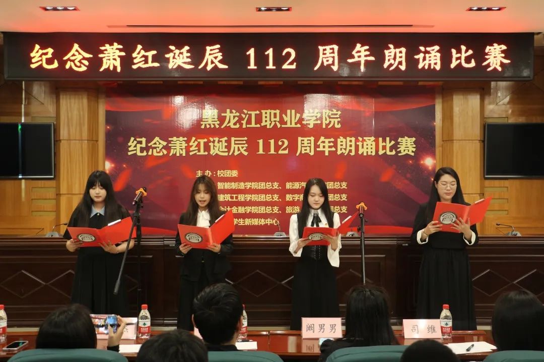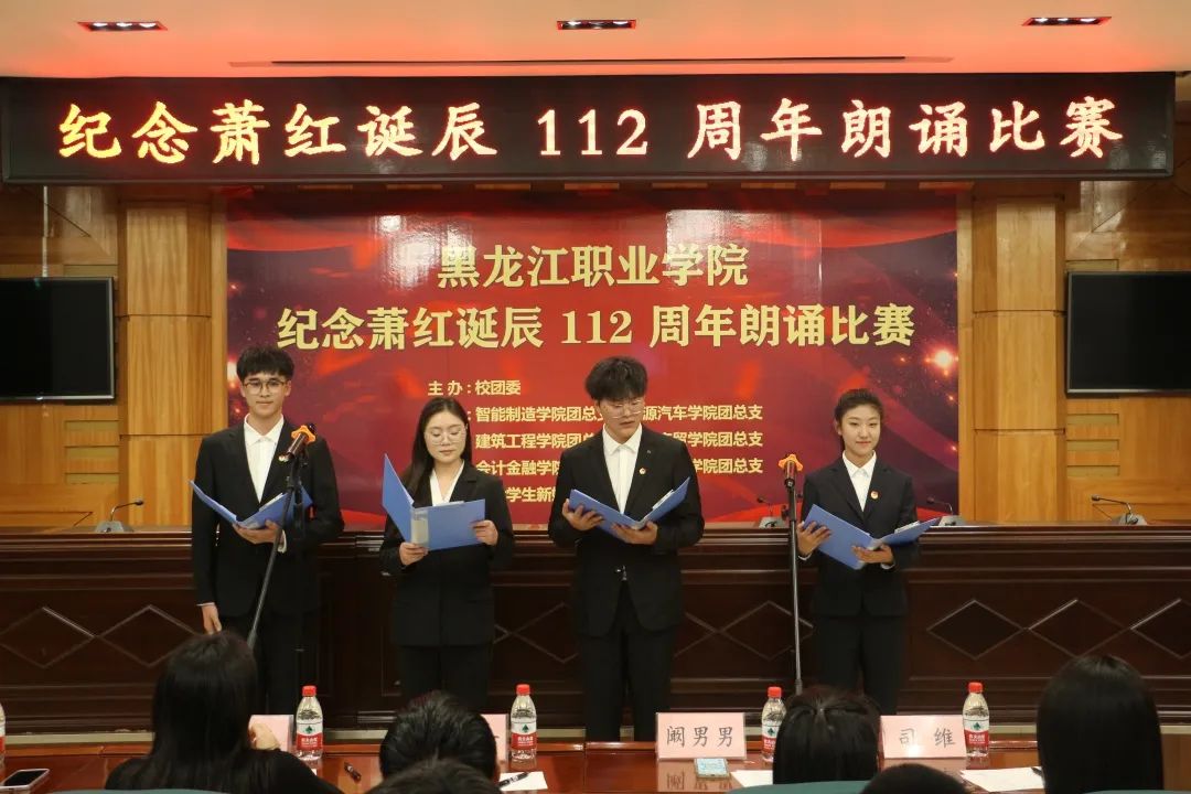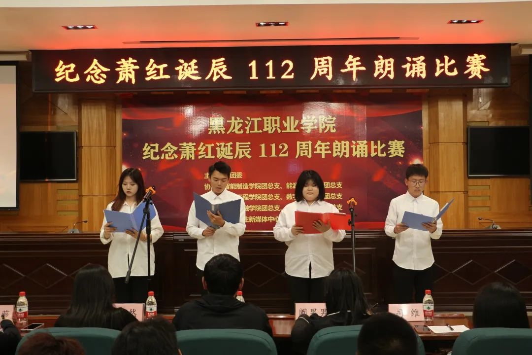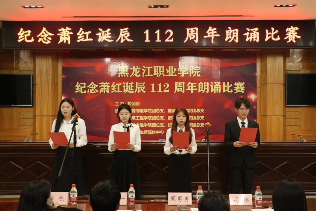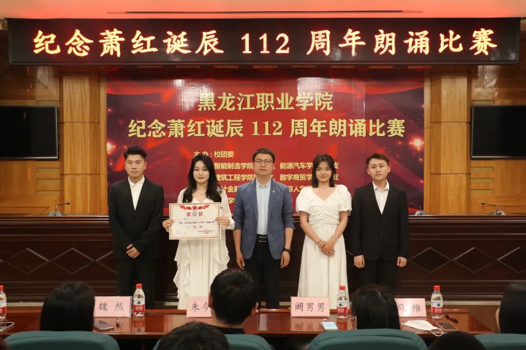 2023年是萧红诞辰112周年,为了纪念这位杰出作家,弘扬萧红文化,进一步打造萧红文化品牌,按照哈尔滨市纪念萧红诞辰112周年“萧红文化周”活动的总体安排和要求,5月26日下午17:30,由校团委主办、各二级学院协办、校大学生新媒体中心承办的“纪念萧红诞辰112周年朗诵比赛决赛”在金年会清华楼九楼报告厅成功举办。校团委干事马雨薇、魏然,宣传统战部干事李鉴奇,马克思主义学院教师朱今一,通识教育学院教师姬虹、司维、阚男男七位老师构成大赛评委团。