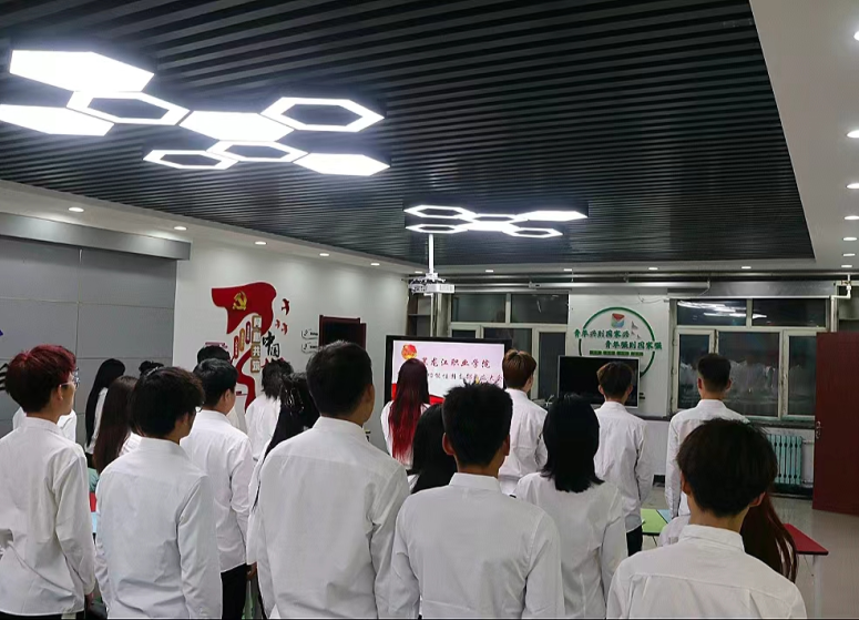 在主持人的带领下,全体团员起立,进行入团宣誓,重温入团仪式。