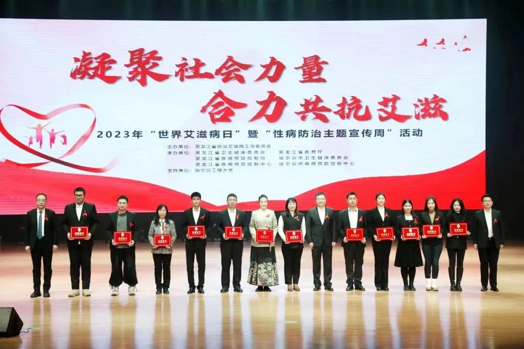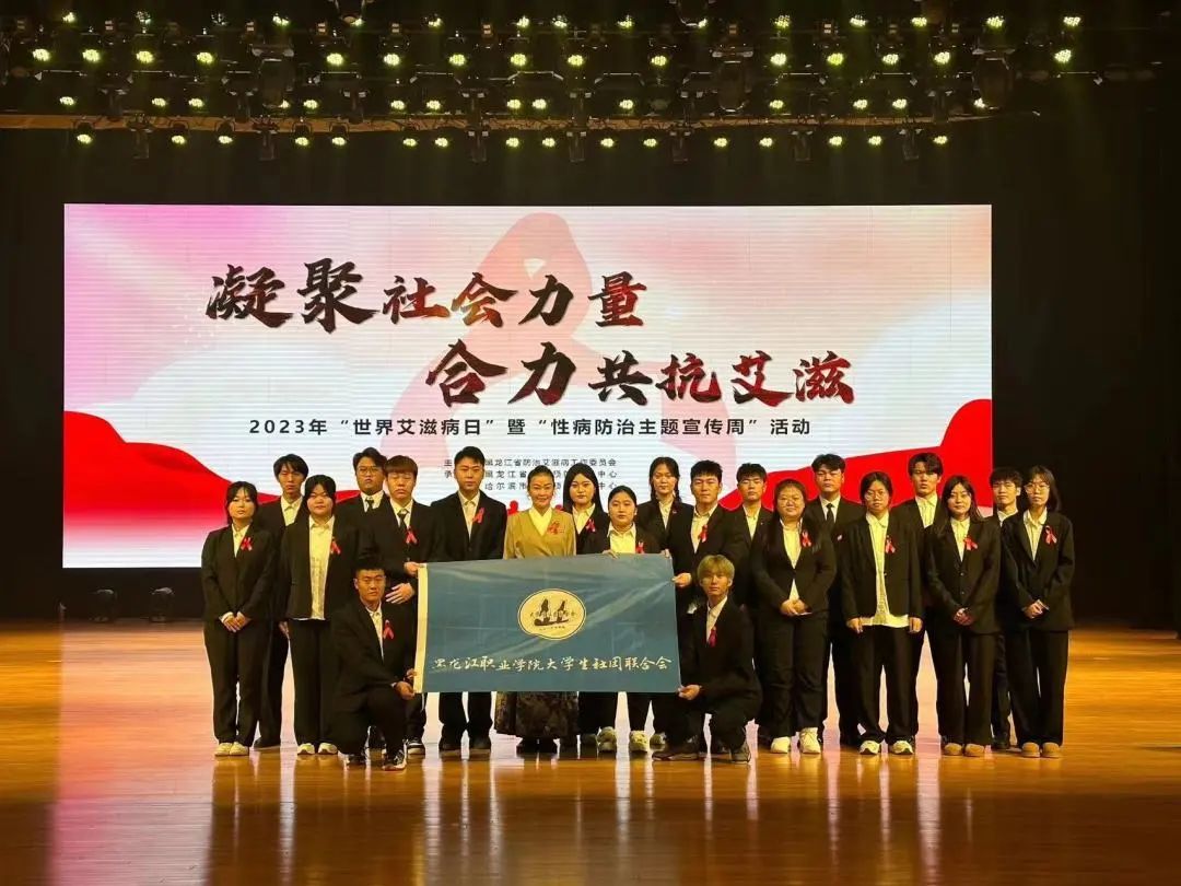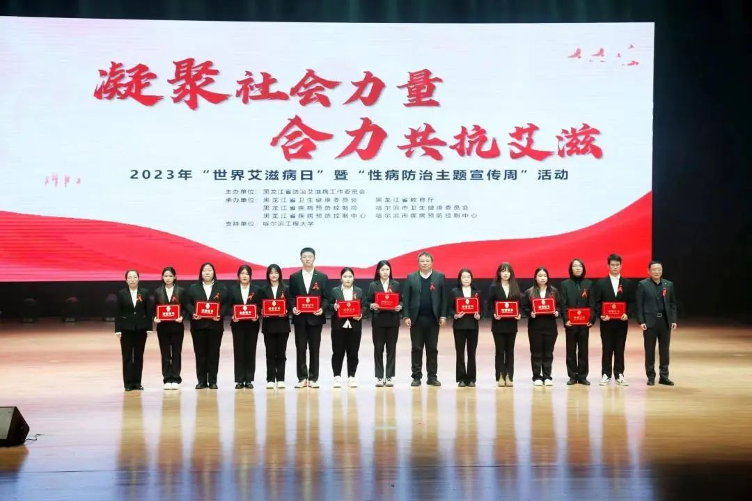 为提高广大群众预防艾滋病的安全意识,大力倡导文明健康的生活方式,由省防治艾滋病工作委员会主办,省卫健委、省教育厅等部门承办的2023年“世界艾滋病日”暨“性病防治主题宣传周活动”在哈尔滨工程大学启航剧场隆重举行。在哈49所高校学生代表和社团代表共同出席、参与了活动。金年会社团指导教师、校团委组宣办主任唐晓恬代表金年会学生社团参加活动。
