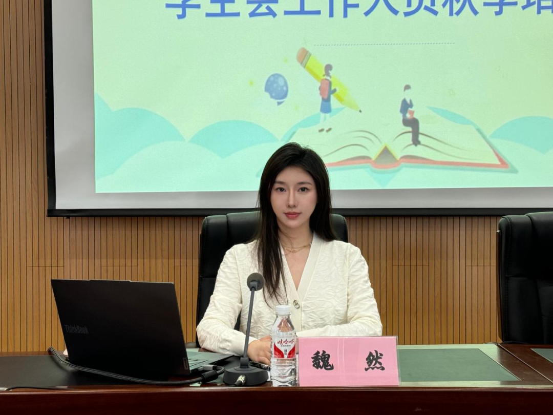 首先,魏然老师带领全体参会人员共同学习党的二十届三中全会精神,并结合自身工作,进一步拓宽解题思维、思考方法路径、提升工作质量,不断推进团学工作高质量内涵式发展。随后,魏然老师从学生干部的角色定位、素养要求与能力培养、团队建设与活动策划、常见问题与注意事项这四个方面对团学干部进行了能力培训,有效提升团学组织工作人员业务能力。最后,魏然老师对《关于推动高校学生会(研究生会)深化改革的若干意见》进行文件解读,明确了学生会的职能、改革运行机制、坚持精简原则、明确遴选条件、严格遴选程序、规范召开代表大会、坚持从严治会、建立述职评议制度、落实党委的全面领导、加强团委的具体指导等十个方面内容,同时希望各位部门负责人可以把各部门的工作都落实到位,部门之间互相配合。