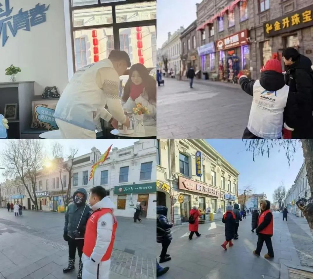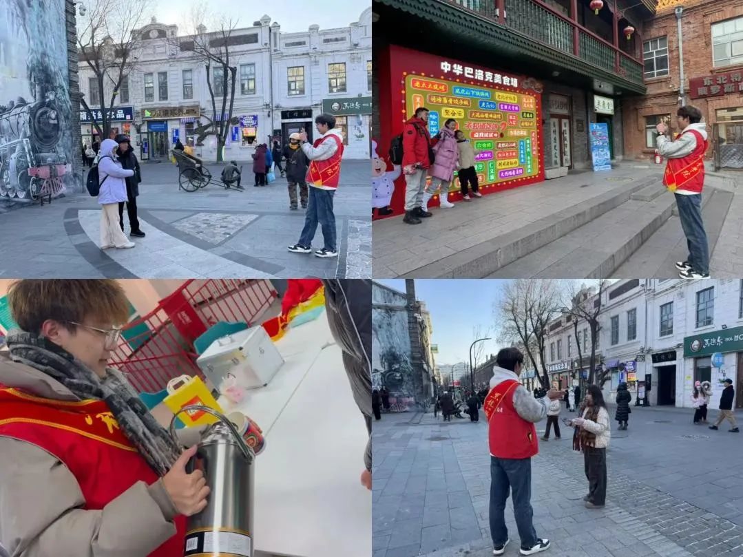 此次志愿服务活动是金年会校团委响应团市委号召,组织金年会青年志愿者们在道外中华巴洛克街区和青年之家开展的志愿活动,期间志愿者们身着统一的志愿服装活跃在街区的各个角落,为中华巴洛克街区增添了一抹亮丽的色彩。志愿者们不仅向外地游客提供提供免费热水、暖贴等贴心保暖物品。同时还作为向导带领游客们在中华巴洛克街区进行导览、讲解街区历史文化,主动帮助游客拍摄游客照。此外,志愿者们还兼顾街面环境清洁与现场秩序维护。他们手持垃圾袋和夹子,仔细捡拾地面垃圾,同时积极劝导不文明行为,让街区环境更加整洁、秩序井然。