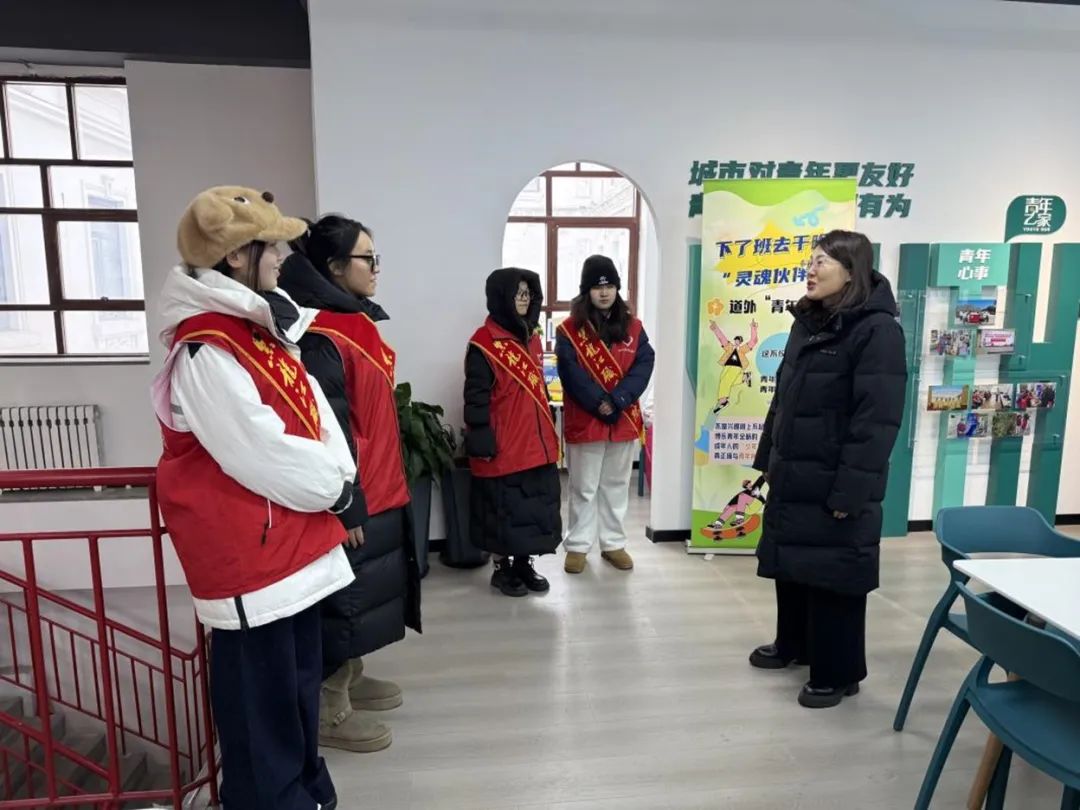 2025年1月9日,哈尔滨团市委副书记刘婷婷、孟春琦;道外团区委副书记刘岩、校团委书记石倩、校团委干事魏然一同前往中华巴洛克街区,对在此进行志愿服务的志愿者们开展了一场温暖人心的慰问活动。