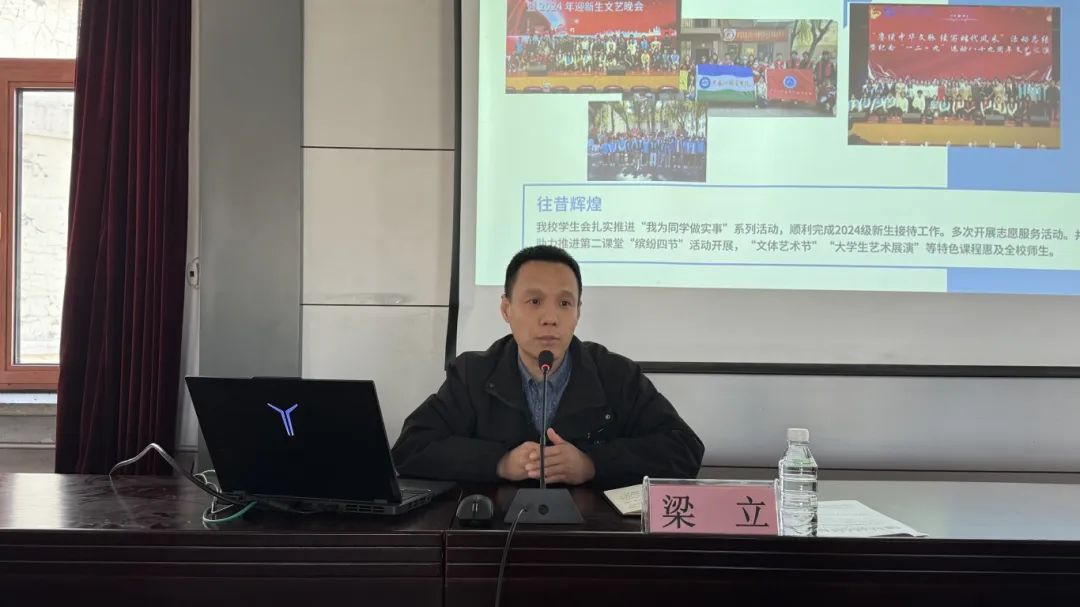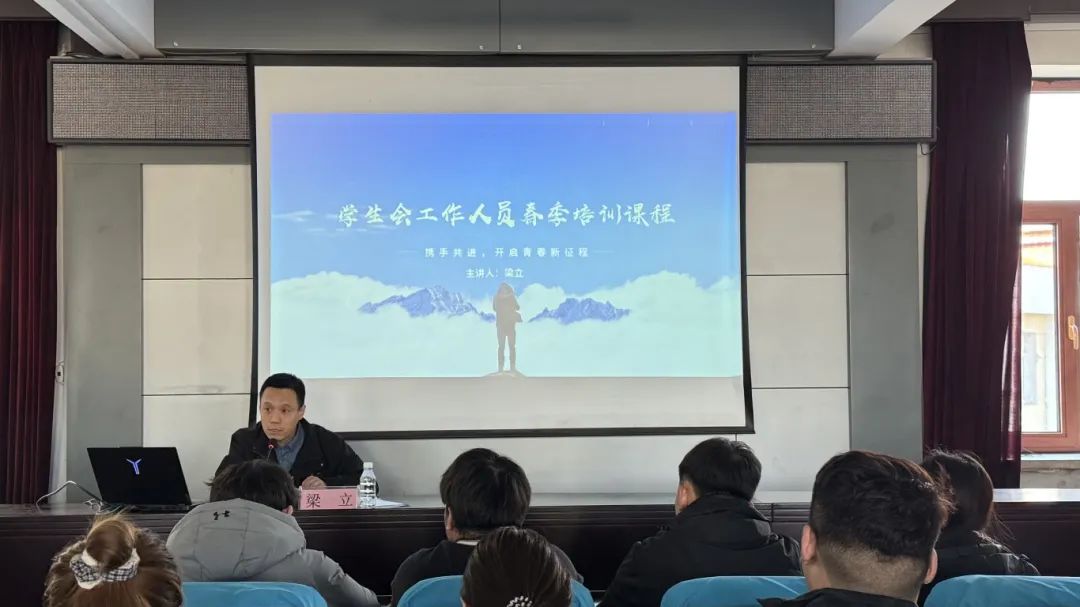 培训会上,梁立首先解读了《学校共青团2025年工作要点》文件内容,然后分别从学生会职责与使命、团队协作与沟通技巧、工作方法与创新思维、纪律与自我提升和互动答疑与交流5个方面进行了深入浅出的讲解。