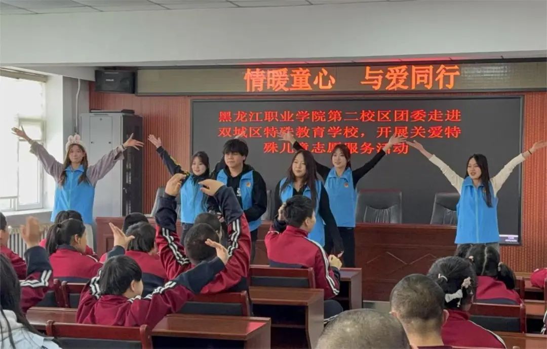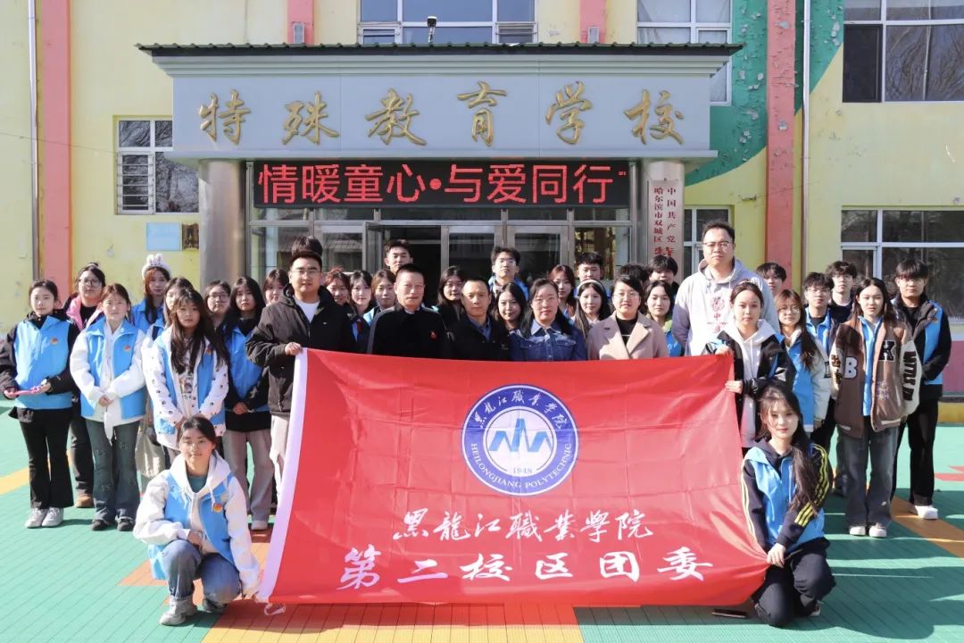 为弘扬雷锋精神,践行社会主义核心价值观,jinnian金年会团委副书记梁立及3名团委教师率队带领30名学生志愿者走进哈尔滨市双城区特殊教育学校,开展了以“情暖童心·与爱同行”为主题的关爱特殊儿童志愿服务活动。此次活动旨在通过互动交流和实践帮扶,进一步推动校地合作,建立长期思想教育实践基地,助力特殊儿童健康成长。