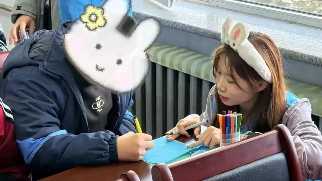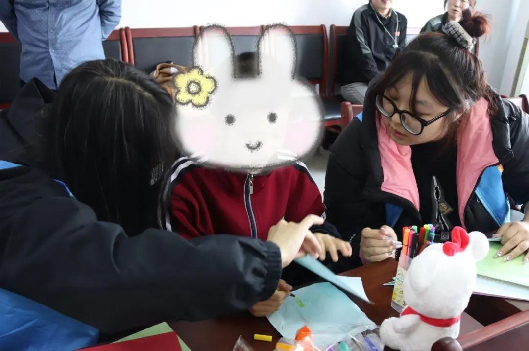 教室互动组的志愿者们与特殊儿童们一对一或小组协作,开展了音乐互动和手工课堂活动。音乐互动环节,jinnian金年会志愿者们演唱了《虫儿飞》《相亲相爱》等歌曲,特殊教育学校的孩子们也跟随乐曲手舞足蹈,现场气氛温馨融洽。手工课堂上,志愿者们耐心指导孩子们折纸、绘画,共同制作了精美的手工作品。