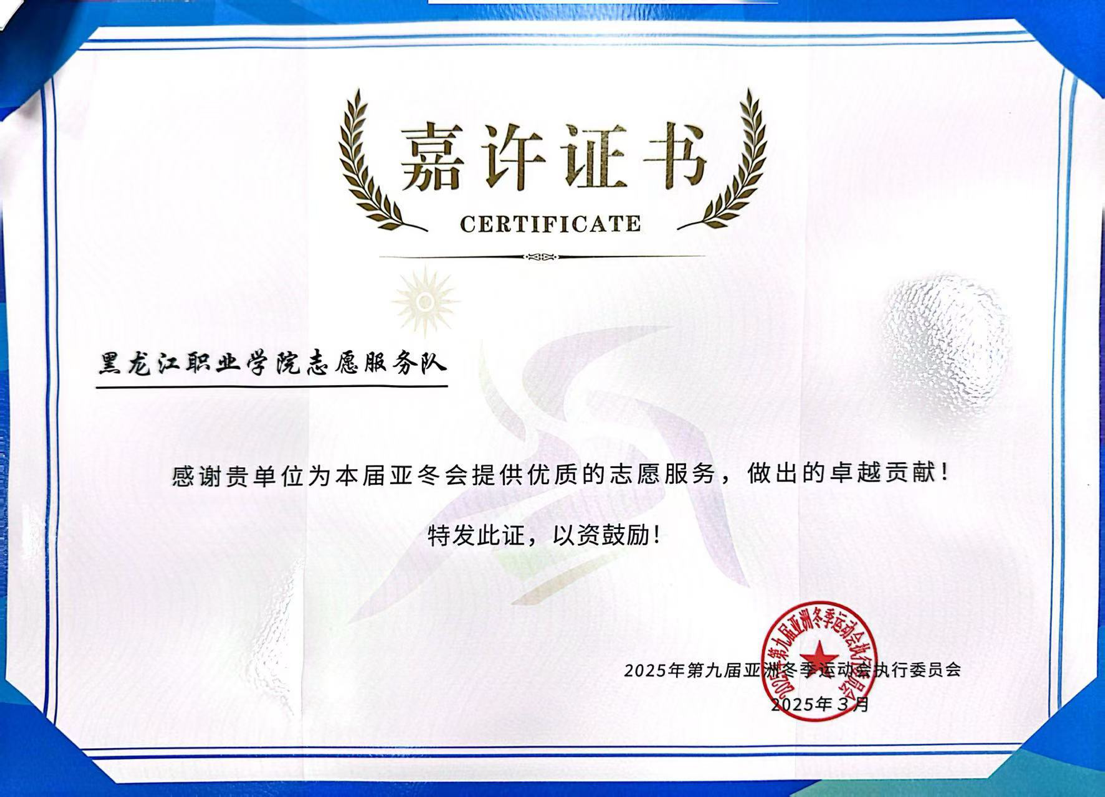 近日,金年会志愿服务队凭借出色表现,荣获亚冬会执委会颁发的嘉许证书,此次荣获嘉许证书,不仅是对志愿者个人的肯定,更是对金年会志愿服务工作的高度赞扬。