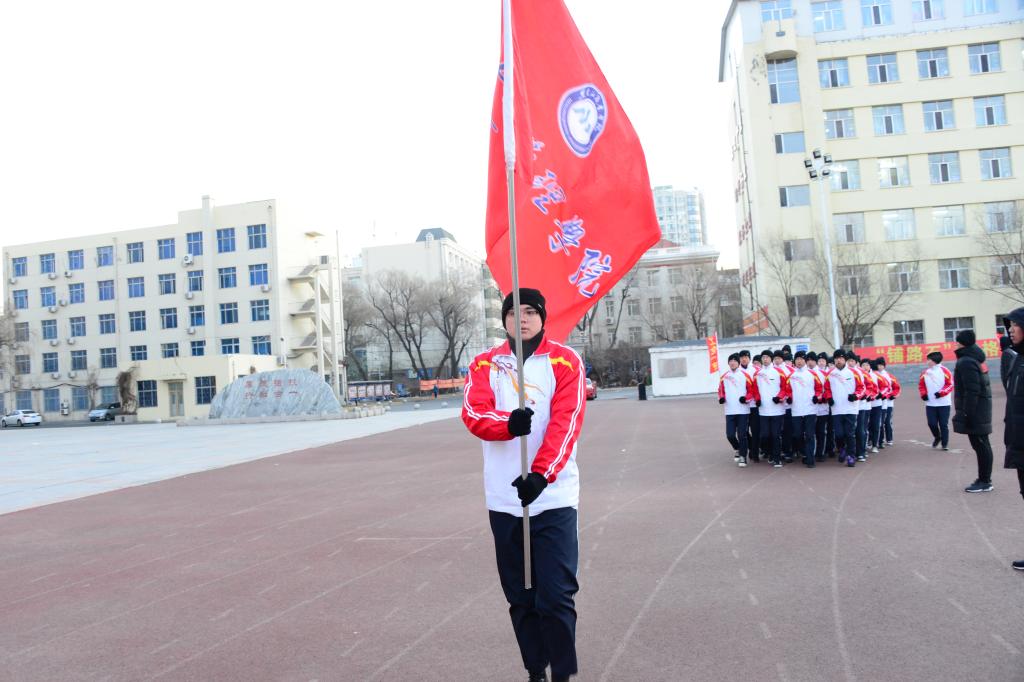 首先,举行了庄严的升国旗仪式。接着进行了91个班级的早军操汇报表演,同学们在零下17摄氏度的校园,战严寒斗风霜,昂首阔步,整齐的步伐声、响亮的口号声此起此起彼伏,让冬日的校园充满了勃勃生机。此次大会共有32个班级被评为“军操标兵班”。