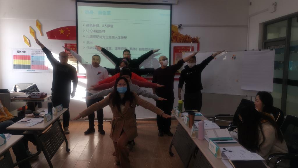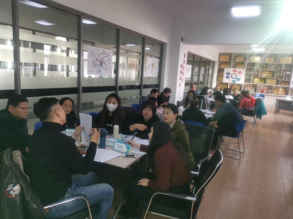 本次培训由国家二心理咨询师、北森生涯培训师赵海楠主讲,内容围绕团体辅导的基础概念、基本框架与设计思路,从招募、准备、研究到自我评估等一些列环节,为参训老师们明确了生涯团体辅导的各项理论基础和实践要点,赵老师采用理论和分组实践模拟等授课形式,通过“风摆杨柳”、“招聘会”等形式多样活泼有趣的团体活动,让学员们迅速融入到团队角色中,真实体验团体辅导活动的整体流程。