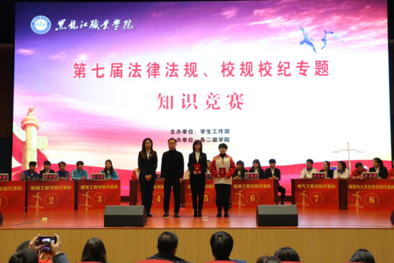 12月16日下午,第七届“法律法规、校规校纪”专题知识竞赛在一校区工匠楼礼堂成功举办。学校党委副书记周家郁,学工部班子,二级学院党总支书记、副书记、学管办主任、辅导员和600余名学生参加了此次活动。