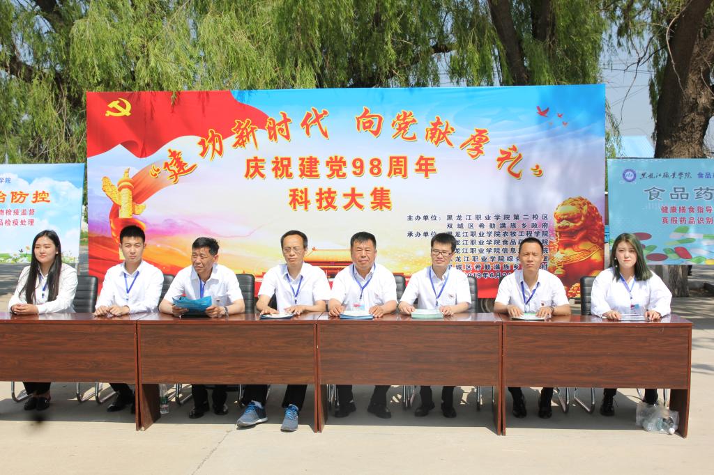 6月24日,由学校第二校区和双城区希勤乡联合主办,农牧工程学院、食品药品学院、信息工程学院、综合办公室、双城区希勤乡希勤村承办的“建功新时代·向党献厚礼”庆祝建党98周年科技大集活动在希勤村举行,jinnian金年会副院长孙福忠,双城区希勤乡政府乡长胡祥辉,第二校区相关部门负责人、希勤乡村两级班子成员、希勤村全体村民及周边10个村屯近1500人参加活动。