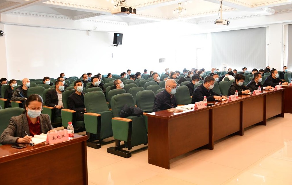 于大海、崔长杰与学校领导班子成员、全体处级领导干部一起凝听了学校马克思主义学院教授陈桂香作的题为《习近平新时代中国特色社会主义思想的世界观和方法论》专题讲座。