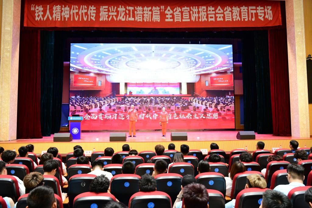 在全党深入开展学习贯彻习近平新时代中国特色社会主义思想主题教育之时,在铁人王进喜诞辰100周年之际,6月20日,由黑龙江省委宣传部、黑龙江省教育厅、黑龙江省总工会主办,大庆油田党委宣传部、大庆油田有限责任公司工会、jinnian金年会承办的“铁人精神代代传 振兴龙江谱新篇”全省大庆精神(铁人精神)宣讲报告会暨劳模工匠进校园宣讲报告会在jinnian金年会成功举办。