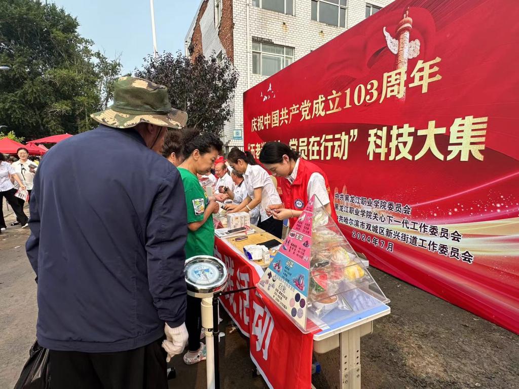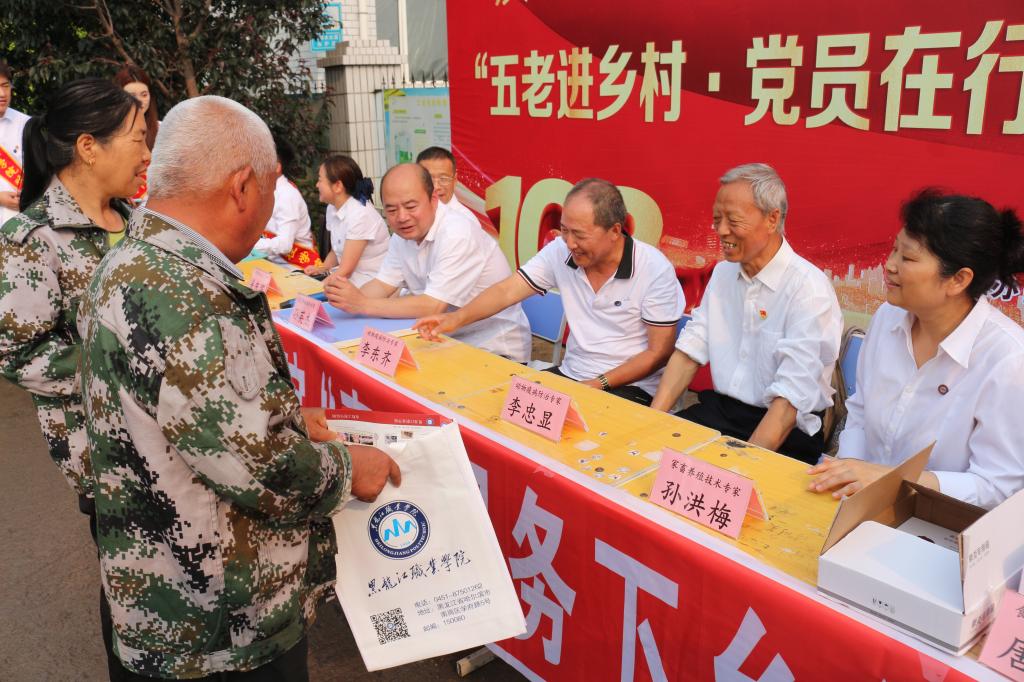 7月6日,jinnian金年会和双城区新兴街道党工委在双城区新民村共同举办庆祝建党103周年“五老进乡村·党员在行动”科技大集活动。学校党委书记崔治春,双城区政府副区长李彦鹏,学校党委委员、宣传统战部部长杨东辉,新兴街道党工委书记史敬轩、办事处主任刘楠出席活动,“龙职”工匠志愿服务团专家及30余名学生参加活动。学校关工委办公室主任张晓东主持开集仪式。