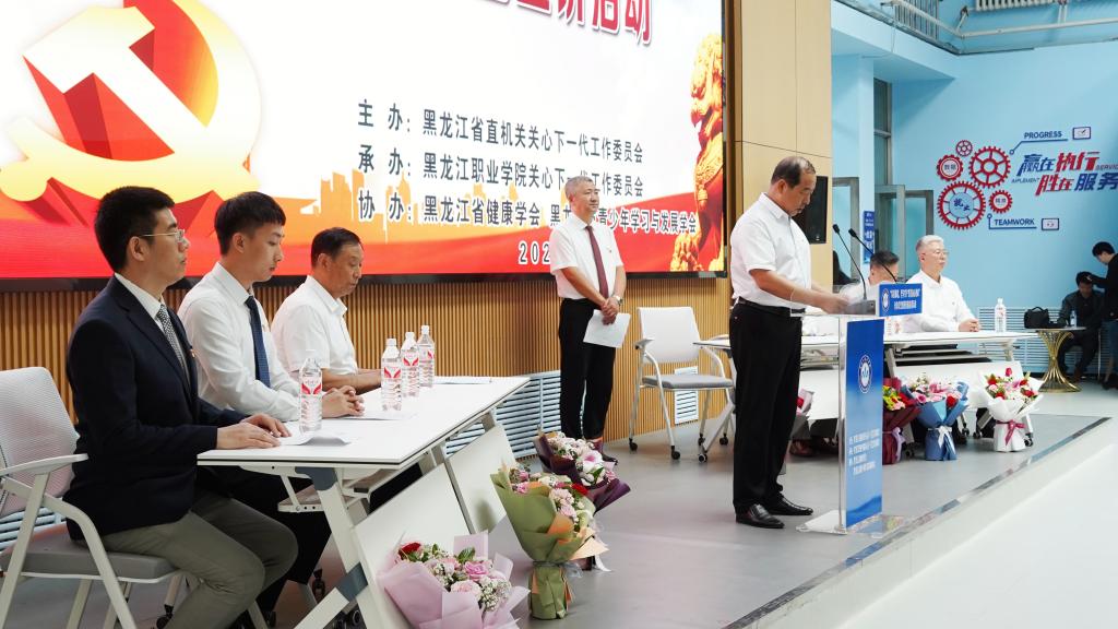 为庆祝建党103周年和中华人民共国成立75周年,深入贯彻落实党和国家关心下一代工作的决策部署,6月24日,由黑龙江省直机关关心下一代工作委员会主办,jinnian金年会关心下一代工作委员会承办,黑龙江省健康学会、黑龙江省青少年学习与发展学会协办的“从我做起,坚守共产党员初心使命”分享式党课进校园宣讲活动在jinnian金年会隆重举行。省直关工委副主任雷铜出席活动并致辞。活动由jinnian金年会关工委办公室主任张晓东主持。