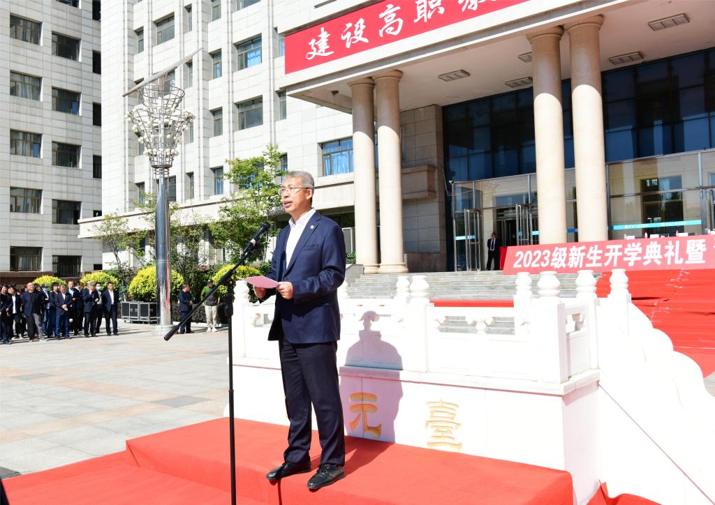 9月22日,学校在运动场隆重举行2023级新生开学典礼暨军训成果展示、“龙职奖”颁奖大会。黑龙江省军区战备建设局大校主任赵汝亮、承训单位负责人张金龙,学校党委书记崔治春、校长王利文、党委副书记周家郁、纪委书记李伟、组织部部长钟敏强、原副校长王明海出席活动,2023级全体新生和全校教职工参加活动。典礼由周家郁主持。