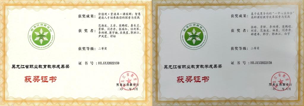 学院多次荣获省级及校级教学成果奖。2022年,范海波、张皓申报的教学成果荣获黑龙江省职业教育教学成果二等奖;2024年,学院共获校级教学成果奖4奖,范海波、张皓、英鹏程三位教师为主持人的教学成果在省级教学成果奖申报中脱颖而出,占据了金年会申报省级教学成果奖中的三席。学院将不断提升教育质量,为培养适应时代需求的高素质技能型人才贡献力量,持续推动学院教育教学迈向新的高度。