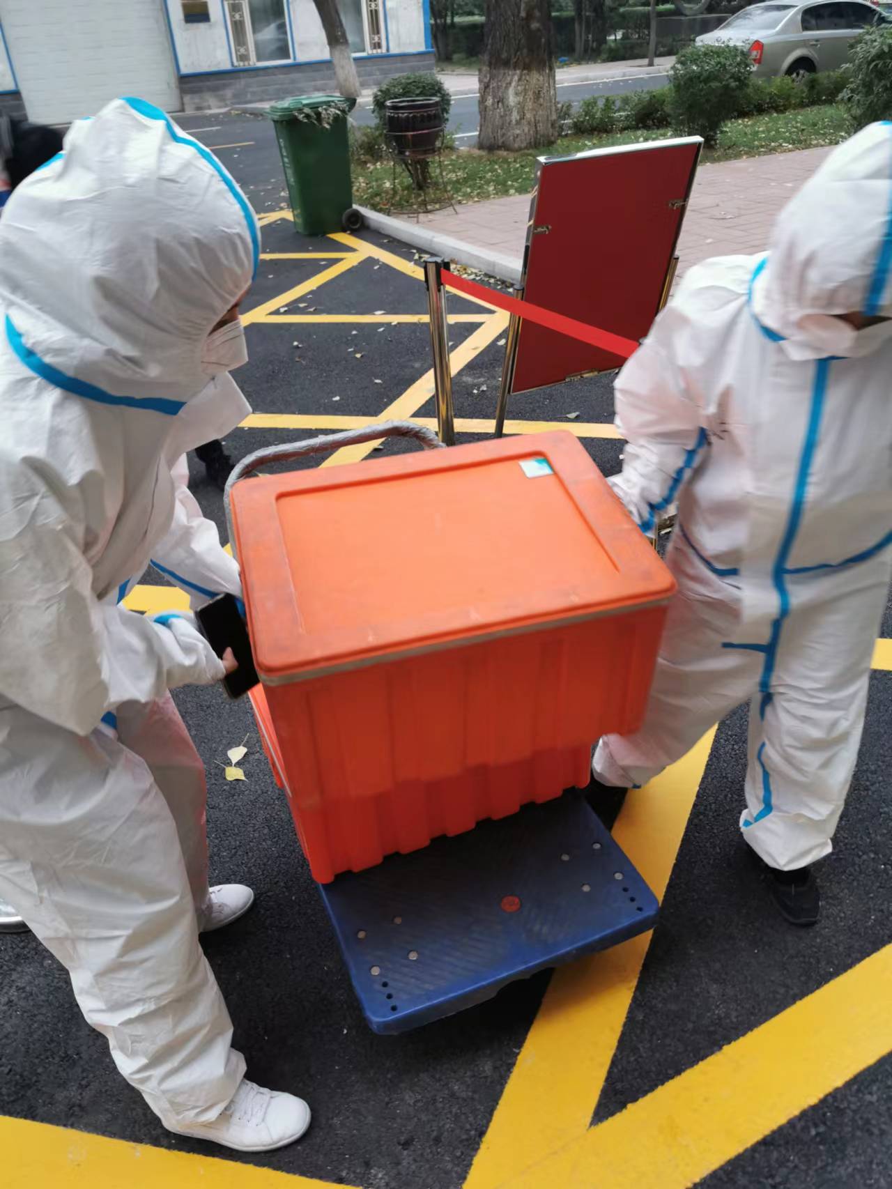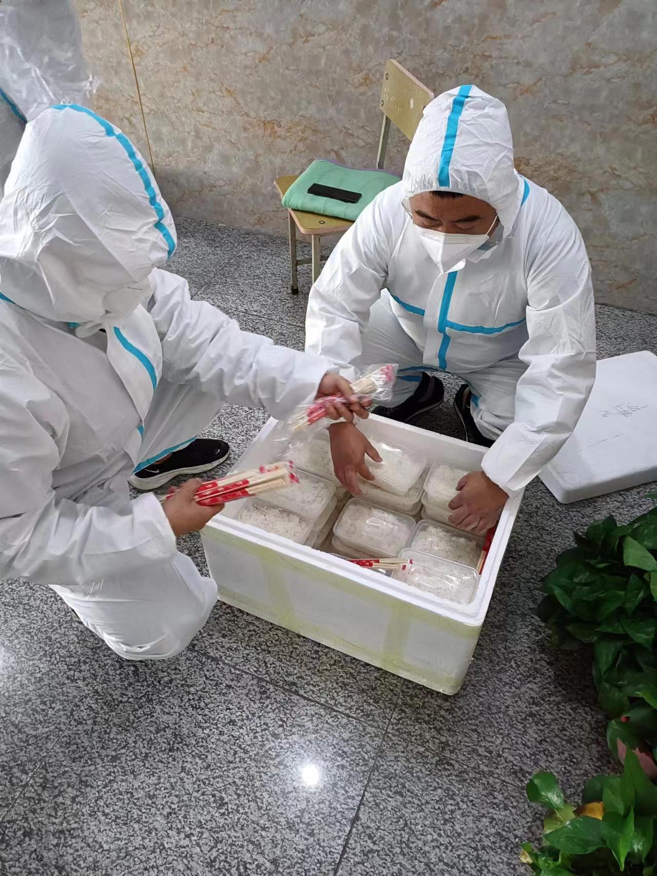 志愿者为学生送饭