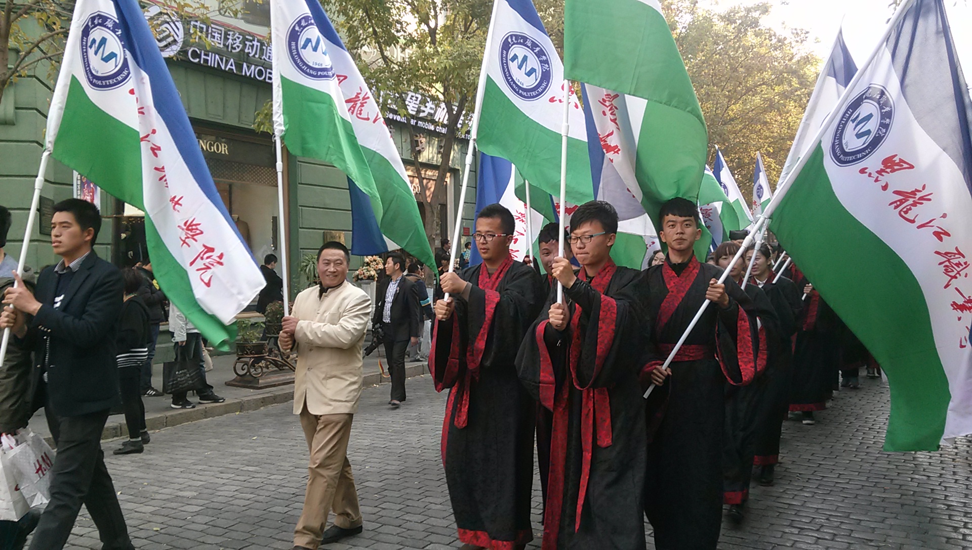 随后,参加成人礼的学生们身着汉服、高举旗帜在中央大街宣扬社会主义核心价值观和“自强有为、兴业报国”的学院精神,这一行动,引起了中央大街上往来行人的广泛关注,得到了社会的良好评价和高度认可。有的行人还不时称赞jinnian金年会的学生具有高素质,高情商。