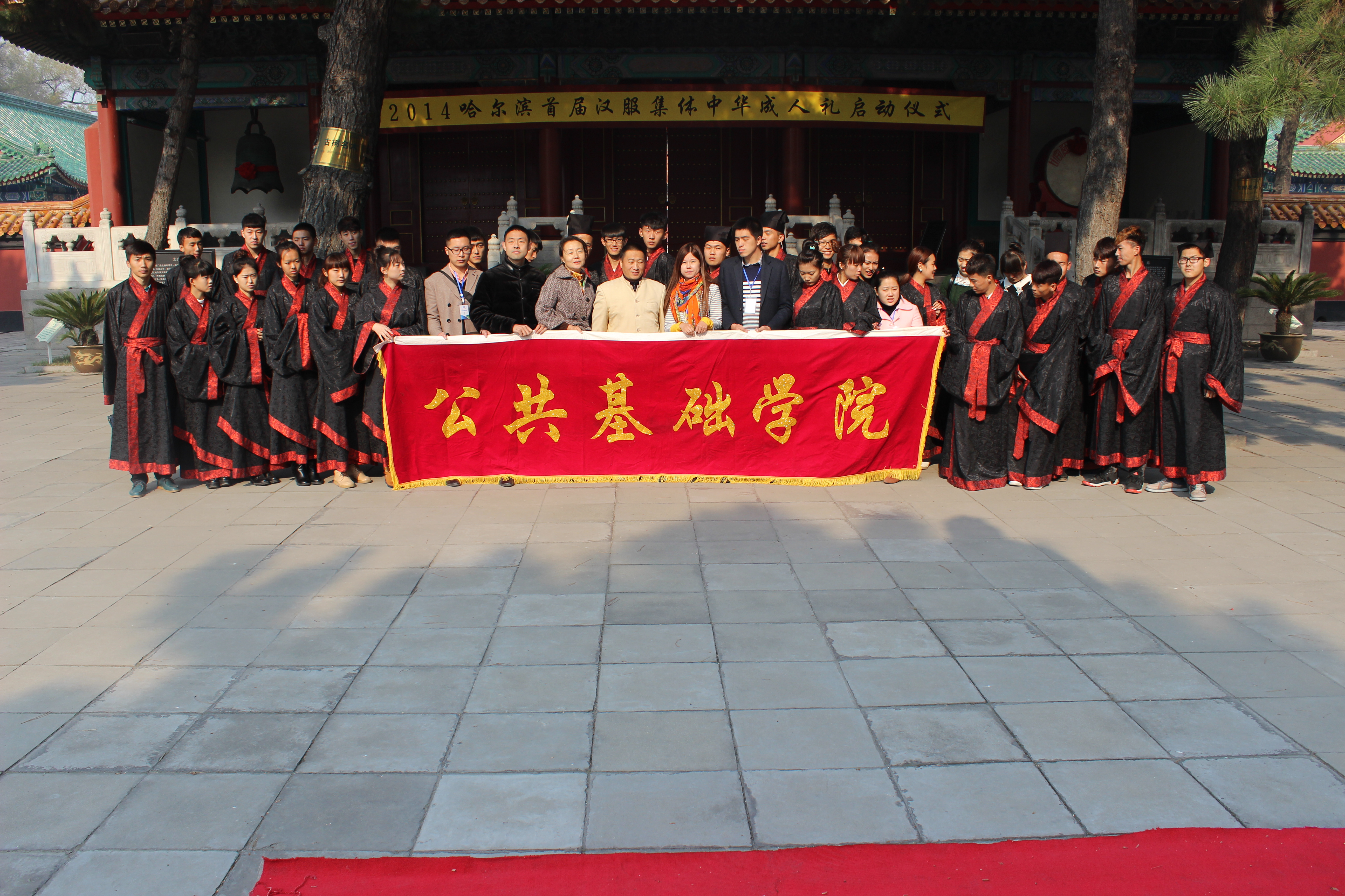 10月18日上午9时,jinnian金年会50余名师生在民族博物馆大成殿前参加了“哈尔滨首届汉服中华成人礼启动仪式”。本次活动是由中共哈尔滨市委宣传部、中共哈尔滨市委精神文明办主办。公共基础学院程刚书记带队,辅导员姬虹、吕静、韩进、王谦携45名学生,工商管理学院辅导员于德洋,建筑工程学院辅导员鲁明及部分学生参加并观摩了成人礼仪式,共同接受传统文化的洗礼。活动中,程刚书记发表了重要讲话。