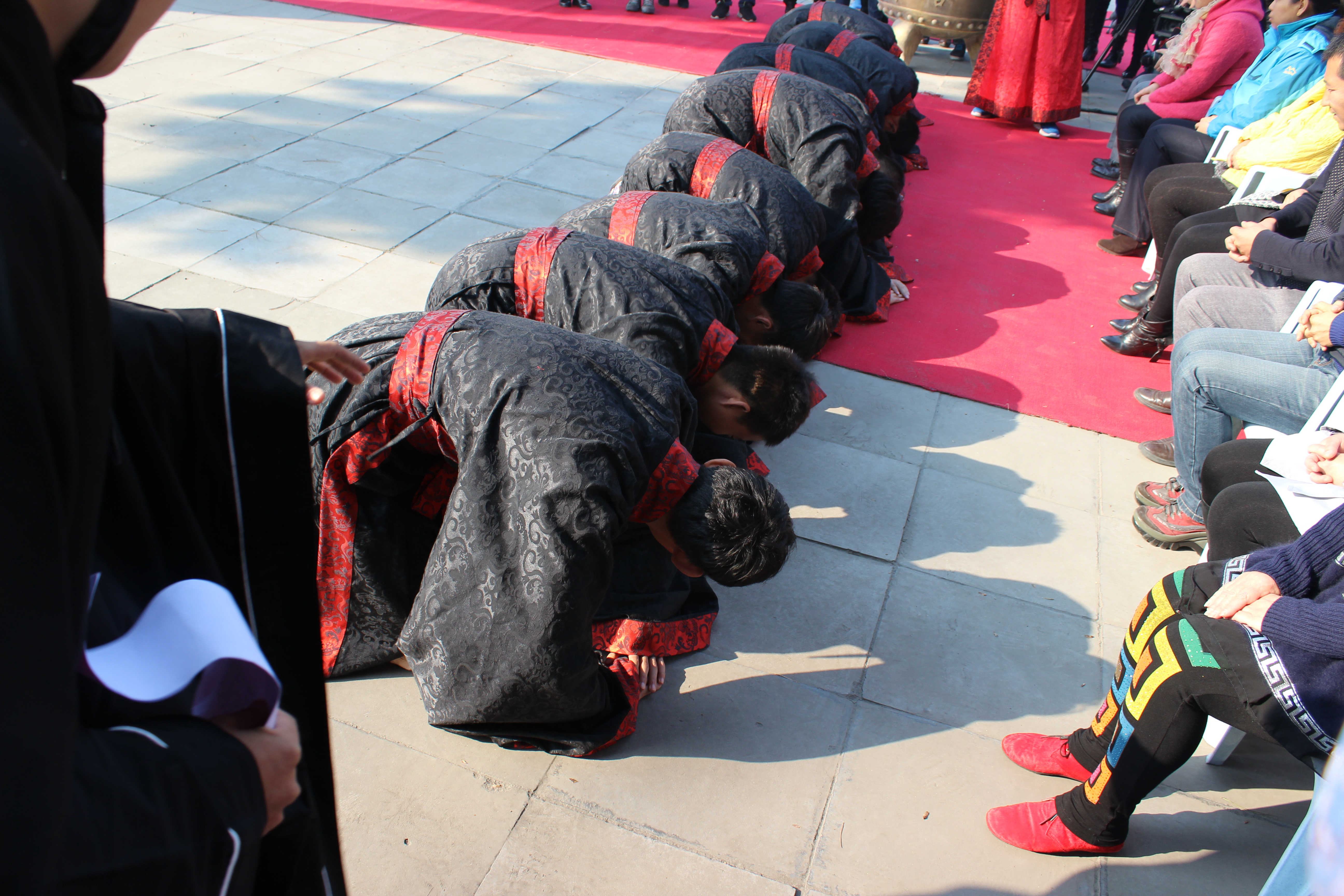 成人礼是我国古代最重要的人生礼仪之一,在伟大的教育家孔子的圣殿前,100名学生加冠、加笄,一拜父母,感念父母养育之恩;二拜师长,感恩老师辛勤教导;三拜孔子像,传承文明报效祖国。面对着孔子像,jinnian金年会学生庄严的立下誓言:“学农民之德,学商人之智,学军人之体,学技师之能,学圣贤之心。”随后,哈尔滨电视台记者采访了我院程刚书记以及药品专业学生王鹏达、季磊,程书记在接受记者采访时说,“学院一直致力于培养学生自强有为、自信自立、敢于担当的品质,将优秀的毕业生输送到社会中去,为他们努力成为一个积极为社会创造价值的人才奠定坚实的基础。”学生们也纷纷表示,“成人礼仪式对他们的人生产生了深远的影响,励志继续弘扬中华优秀传统文化,践行社会主义核心价值观,为努力实现中国梦做出应有的贡献。”