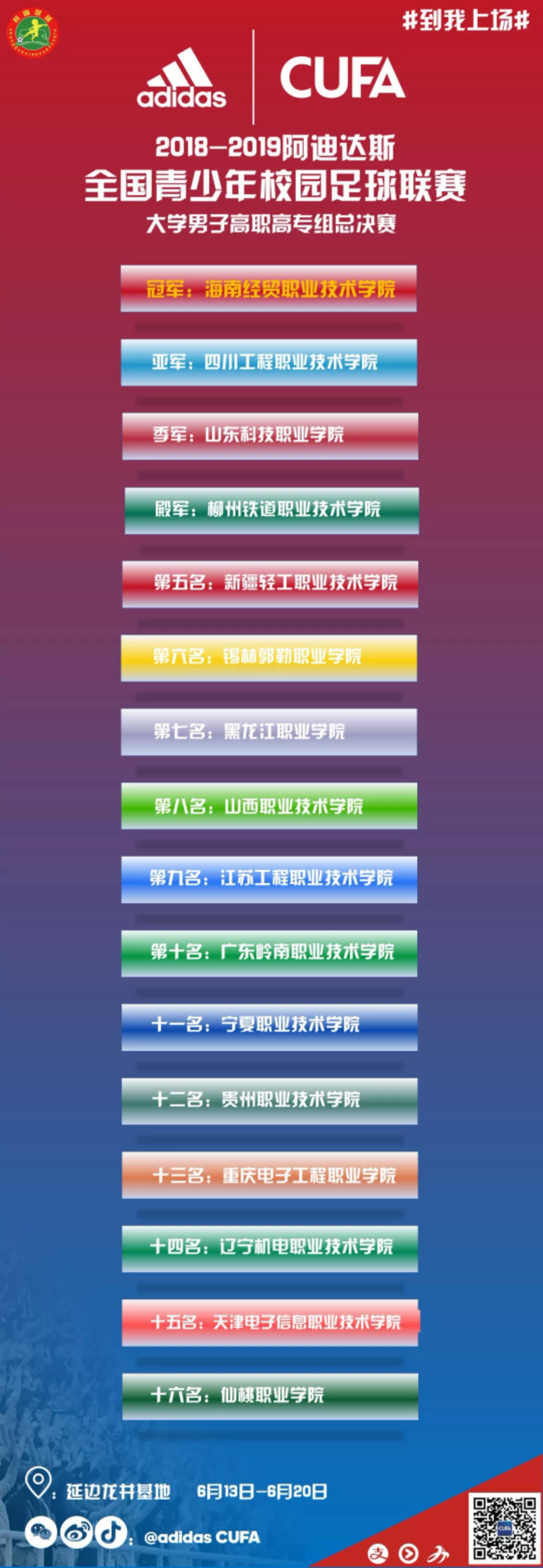 6月20日,2018-2019全国青少年校园足球联赛大学男子高职高专组总决赛在辽宁机电职业技术学院落下帷幕。金年会足球队代表黑龙江省出征总决赛,这是继2017-2018赛季挺进全国八强后,再次为黑龙江夺得荣誉!荣获全国总决赛第七名的优异成绩!