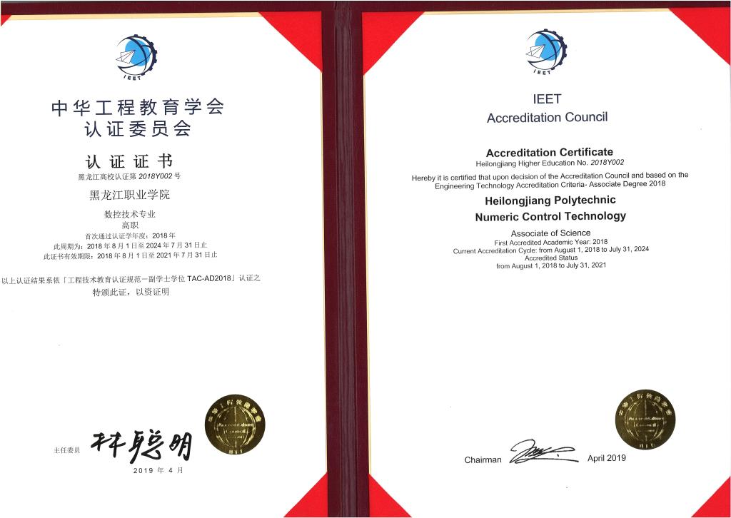 2019年4月19日,中华工程教育学会(IEET)认证委员会( Institute of Engineering Education Taiwan) “2018学年度通过认证专业证书颁发仪式”在西安隆重举行,金年会首批参加悉尼协议国际工程技术教育认证的数控技术专业与计算机网络技术专业获得了国际工程技术教育认证(TAC-AD)证书。