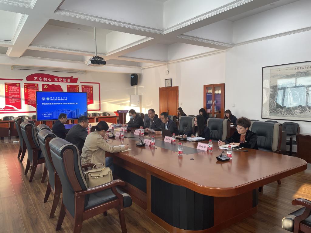 在交流会谈环节,周家郁首先代表学校对李荣华一行的到来表示热烈欢迎,并简要介绍了学校的基本情况。继续教育学院院长王英侠随后向来宾详细汇报了《职业院校服务全民终身学习》项目的进展、成果以及面临的挑战。李荣华主任对金年会继续教育工作给与了高度评价,他指出“龙职继续教育工作扎实、基础稳固,尤其是在社区教育方面能够扎根深入,久久为功,实属难得。”