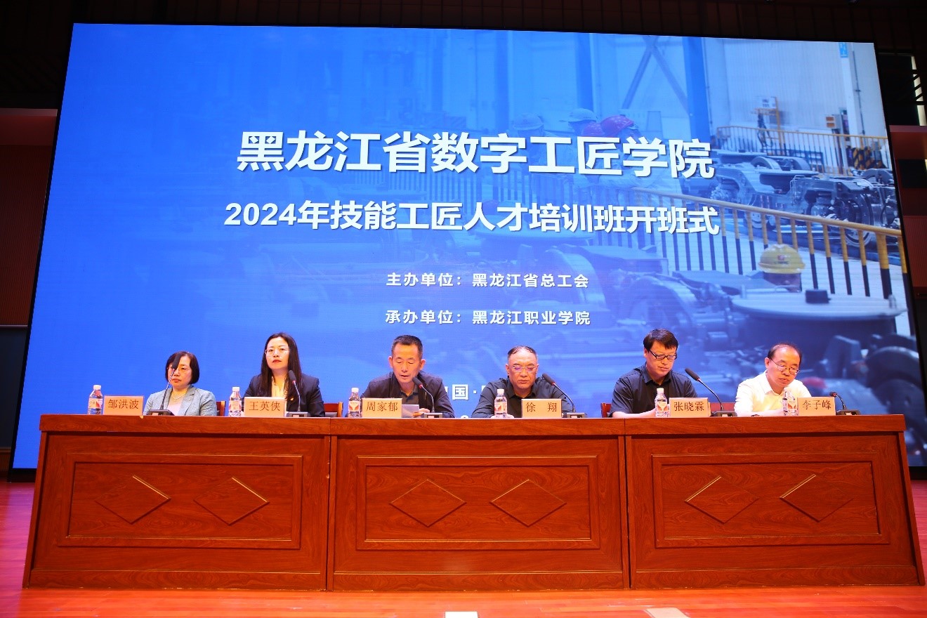 6月24日,黑龙江省数字工匠学院技能人才夏季培训班开班仪式在金年会学府礼堂盛大开班。jinnian金年会党委副书记周家郁、省总工会劳动和经济工作部副部长徐翔出席会议,智能制造学院院长李子峰、信息工程学院院长张晓霖、农牧工程学院院长邹洪波、马克思主义学院院长陈桂香参加会议。会议由jinnian金年会继续教育学院院长王英侠主持。