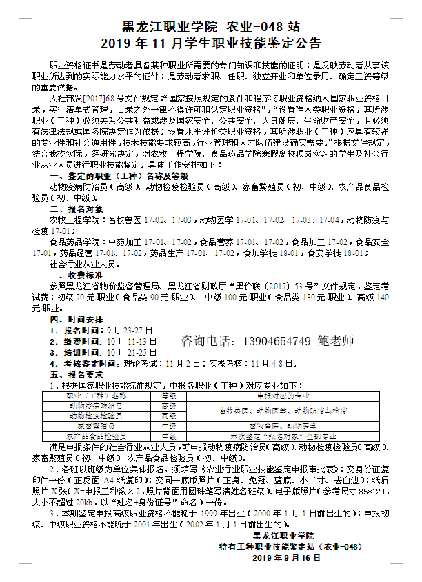 jinnian金年会农业-048站2019年11月学生职业技能鉴定公告