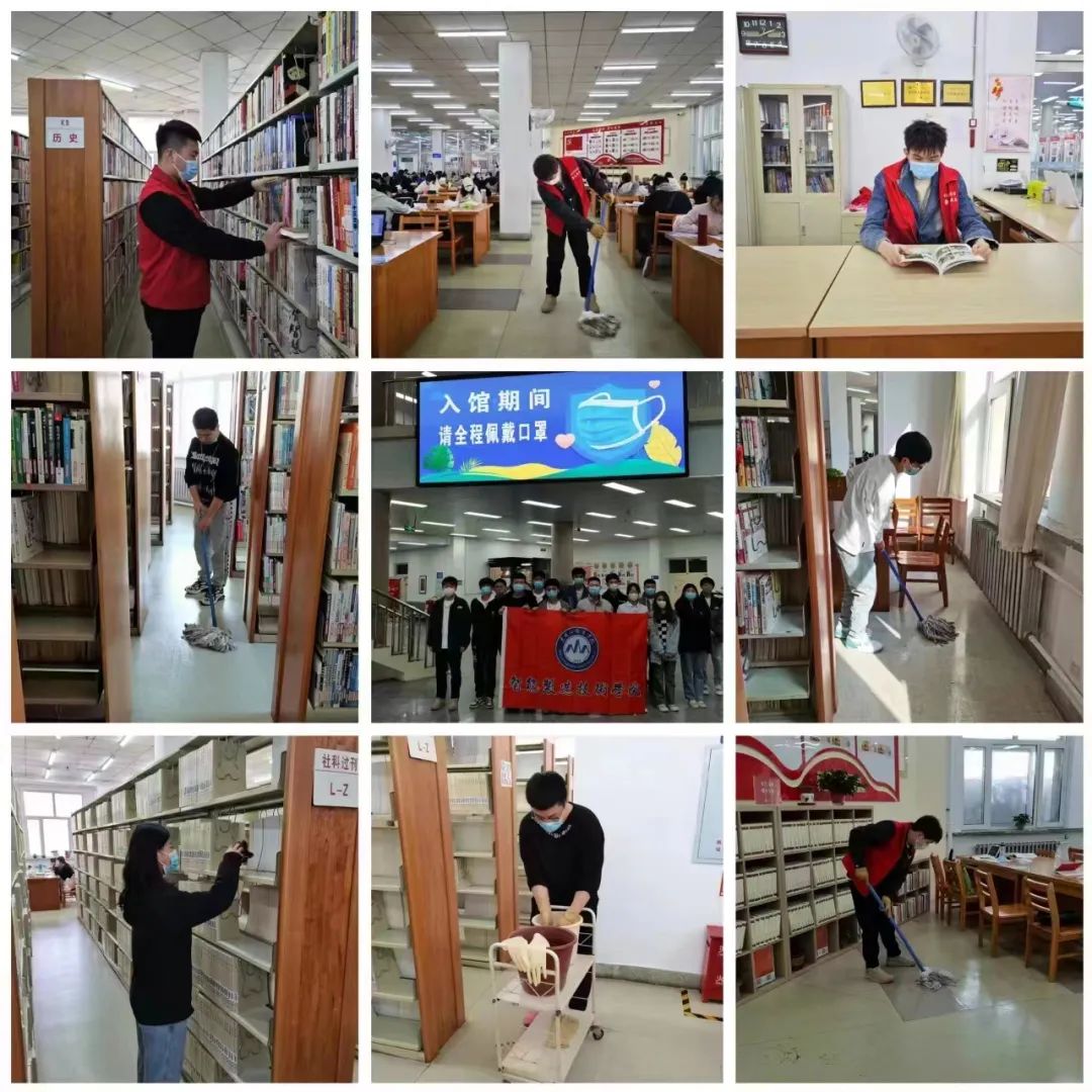 志愿服务开始,志愿者们穿上志愿服务马甲,开始整理书籍、打扫场地卫生、擦拭书架、在图书管理员的指导帮助下,志愿者们分工明确以饱满的热情投入到工作中。志愿者们在书香氛围及志愿之行中践行了积极乐观的生活态度、展现了当代青年的朝气蓬勃的精神风貌。