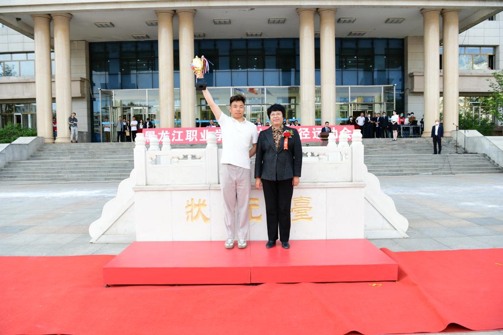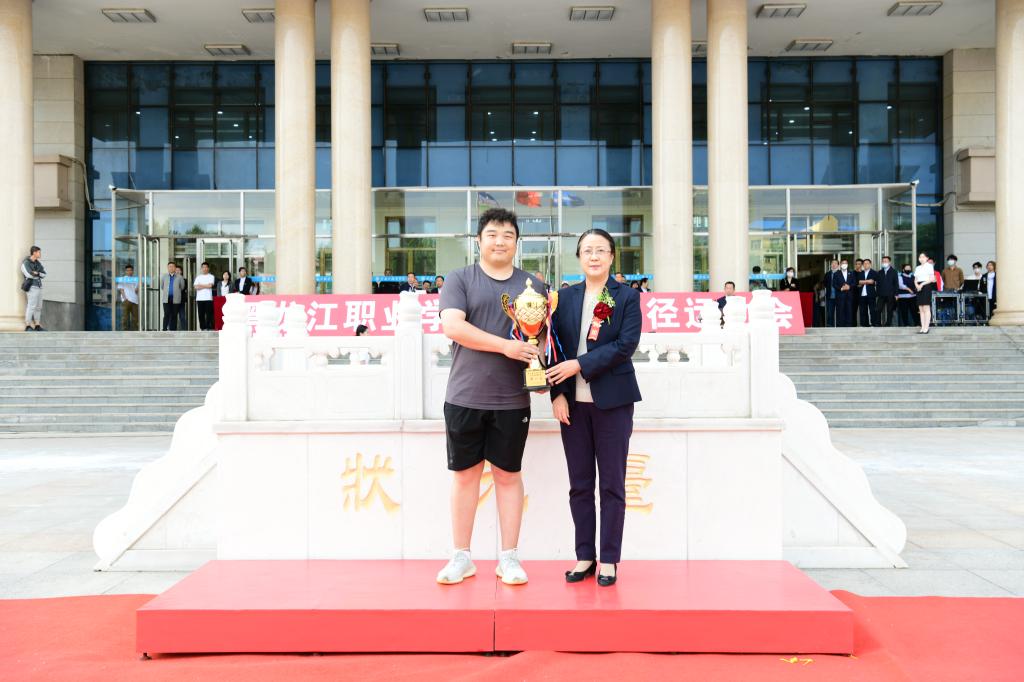 ▲党委委员、副校长吴艳秋为团体总分第一名颁奖
