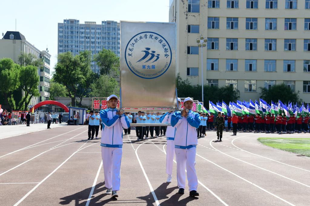 伴随着嘹亮激昂的乐曲,花束队、花环队、刀旗队和9支代表队迈着矫健的步伐入场,接受大会检阅。各方队身着统一服装,喊着嘹亮的口号经过主席台,充分展示了“龙职”师生积极向上的精神风貌,赢得在场师生的阵阵喝彩。检阅完毕,运动会在庄严的升旗仪式中拉开序幕,高昂的国歌声响彻上空。