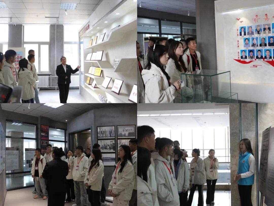 ▲学生团参观校史馆、731校内临时展区、旅俄华侨展校内临时展区