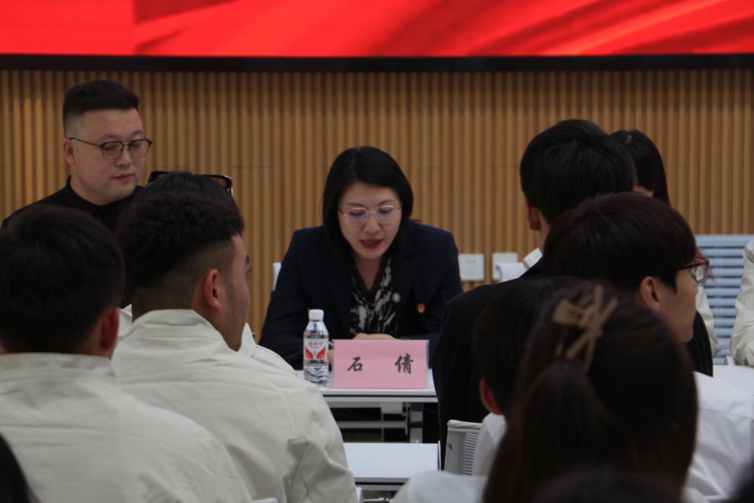 ▲学工部党总支书记、团委书记石倩讲话