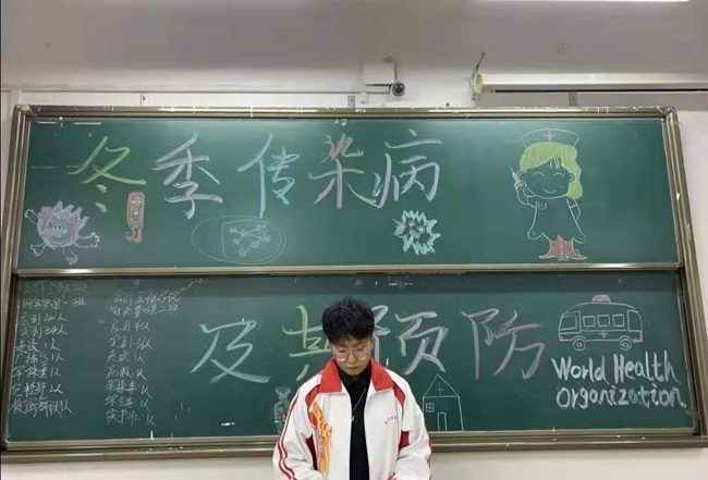 在同学们入座后,首先由各班级的负责人在讲台上介绍了一些冬季常见疾病,并宣传这些传染病的预防科普,保证同学们能对传染病的特征进行了解和相关的预防手段。最后叮嘱同学们回寝后要保证寝室的通风情况,要保证寝室内清新空气的流动,还建议同学们要每天牢记打扫寝室时喷洒消毒水、加强身体锻炼、保持饮食均衡等重要的问题。最后由班级负责人登上讲台进行本次班会内容的总结,使这次的主题班会落下帷幕。