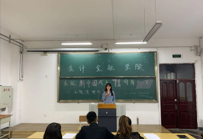 为响应团委号召,将励志、爱国教育与活动有机融合,充分展示我院大学生“自强有为,兴业报国”的精神风貌,激励学生志存高远、勤奋学习、努力进取,为实现中国梦凝心聚力。我院于2020年9月23日晚六点于东J502举办 “我与祖国共奋进” ——庆祝新中国成立71周年演讲比赛初赛。
