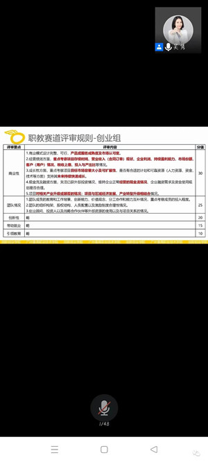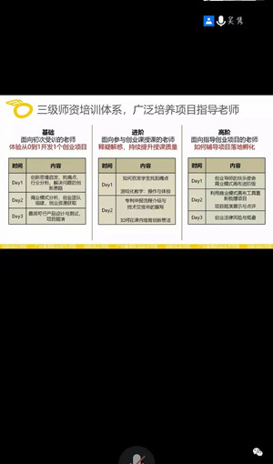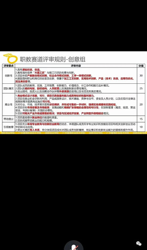 会议上,主讲教师吴隽对创新创业教育的讲解,清晰地展现了职教赛道评审规则,详尽介绍了比赛有关的评审内容,对前六届高职院校大赛获奖情况也进行了明确的数据分析,还就有关广泛培养项目指导老师、以赛促教,以赛促学、激发师生创新创业热情提出了建议。同时吴隽老师还概述了培训方法,并对备赛全过程生动地划分育种、选材、孵化、打磨四个板块,让参会的师生对大赛流程有了更清晰的认识。