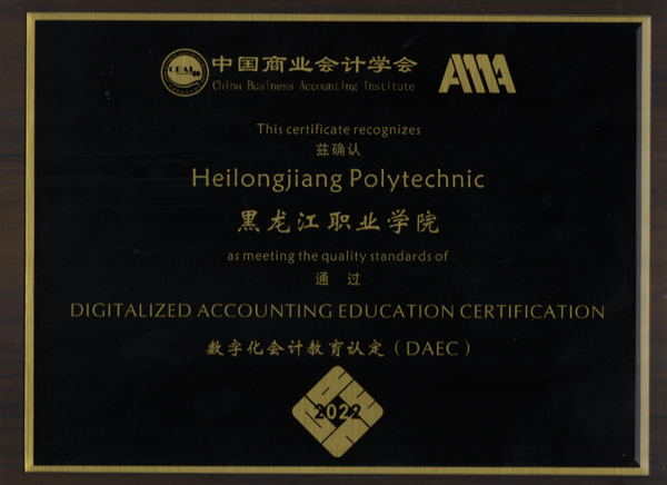 8月14日,在中国商业会计学会组织的“数字化会计教育认定(DAEC)”项目评审中,金年会会计金融学院大数据与会计专业通过认定,是黑龙江省唯一一所通过认定的标杆高职院校。