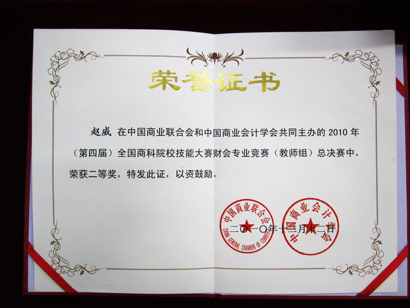 第四届全国商科院校技能大赛财会专业竞赛总决赛于2010年12月9日至12日在北京举行。本次竞赛是由中国商业联合会和中国商业会计学会联合主办、中国商业联合会商业职业技能鉴定指导中心承办的全国性商科教育学科竞赛活动。