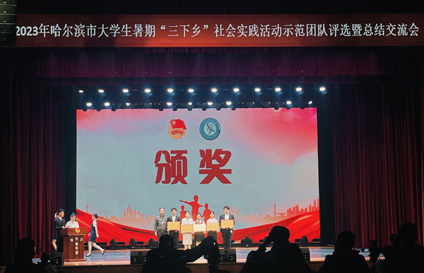 2023年10月20日下午,2023年哈尔滨市大学生暑期“三下乡”社会实践活动示范团队评选暨总结交流会在哈尔滨市青年宫成功开展。