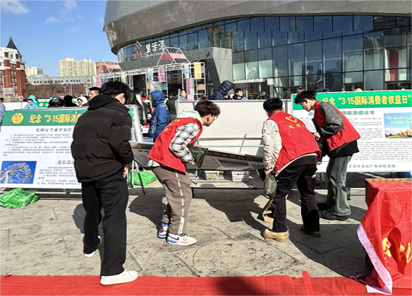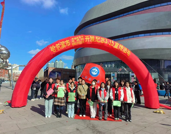 为广泛宣传2024年“激发消费活力”消费维权年主题,发动社会力量优化消费环境,更好满足人民群众美好生活需要,发挥消费对经济发展的基础性作用,助推我市高质量发展,3月15日上午,哈尔滨市市场监管局、市消保中心、市消费者协会联合南岗区市场监管局、南岗区消费者协会及市直相关部门在西城红场共同开展纪念“3·15国际消费者权益日”宣传活动。jinnian金年会会计金融学院辅导员刘珈岐带领学院青年志愿服务队参与活动。