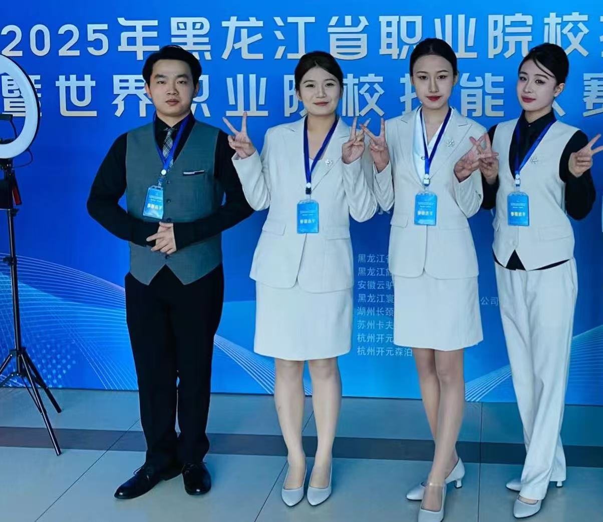 4月26日,在2025年黑龙江省职业院校技能大赛暨世界职业院校技能大赛选拔赛(高职组)“酒店服务”和“酒水服务”两个赛项中,金年会旅游人文学院李晓松、何欣老师指导的陈明辉、刘函竹、张铭轩、李芊宏四位同学组成的“酒店服务”代表队,以及王迪、唐磊老师指导的王思怡、张铭轩、赵怡然、孙玮超四位同学组成的“酒水服务”代表队,均凭借出色的表现荣获全省二等奖。尤为值得庆贺的是,“酒店服务”代表队更是成功入围世界职业院校技能大赛争夺赛,向着更高的荣誉发起冲击。