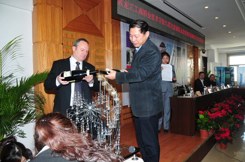本次签约仪式在和谐、愉快的氛围中进行。学院刘公远副院长为本次签约仪式做重要讲话,并祝活动圆满成功。旅游与人文艺术学院邓剑平院长与喜达屋酒店集团Micheal pross先生共同签署合作协议。随后,我院赵继会院长与Micheal pross先生共同走到香槟塔前将美酒斟满,共庆这一历史性的时刻。