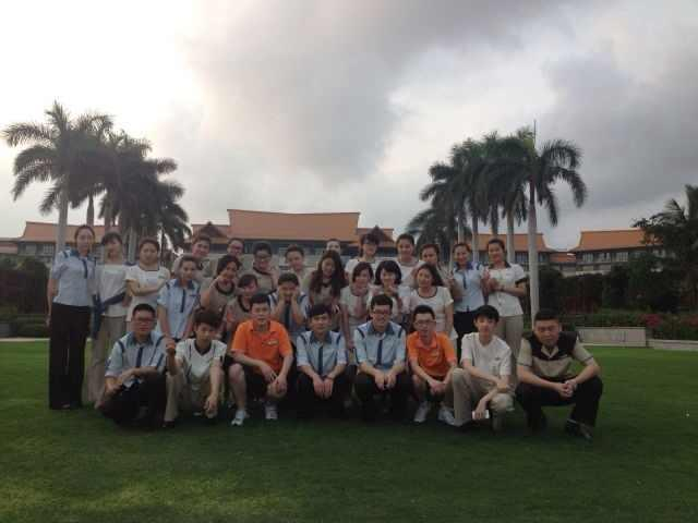 2014年4月6日我院李庆苏带领29名学生抵达三亚海棠湾万丽酒店,酒店情的接待了抵达的师和同学们。同学们也对三亚富有特色人文和海岛风情产生了极大的兴趣,员工和实习生的住宿条件和餐饮条件非常优越,激发了学习和工作热情。为期一周的入 职培训结束后,同学们被分配到前厅、客房、餐饮进行实习,开始为接待世界旅游旅行大会做准备