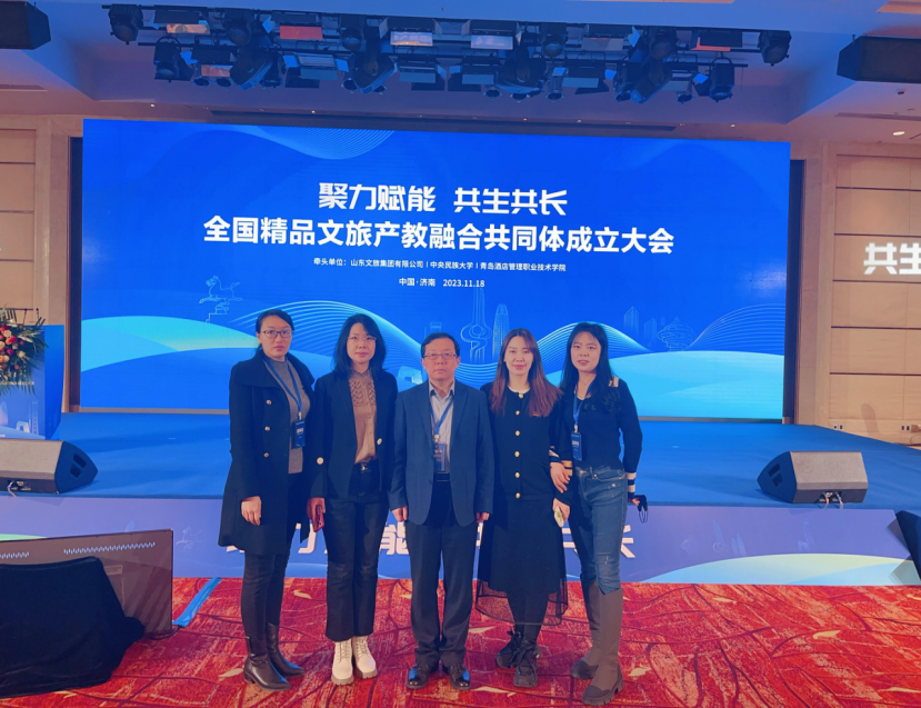 为深入贯彻落实国家有关部署,着力深化产教融合、校企合作,促进行业优质资源集成、开放、共享,2023年11月18日,jinnian金年会旅游人文学院总支书记李勇民、学生管理办公室主任徐金然、旅游管理专业教研室主任陈洪宏等一行前往济南参加“全国精品文旅产教融合共同体”成立大会。