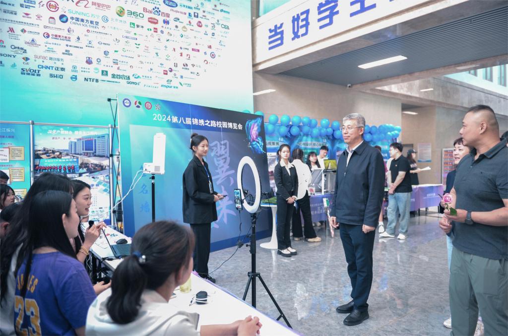 当天,jinnian金年会校长王利文、党委副书记周家郁来到展会现场并参加了开幕式。开幕式在欢快的开场舞中拉开序幕,旅游人文学院党总支书记李勇民、创新与创业学院副院长朱晓丹进行了开幕式致辞,到场领导为开幕式剪彩,旅游人文学院院长刘莉宣布展会正式启幕。展会进行过程中,jinnian金年会副校长何志鹏也来到现场参观指导。
