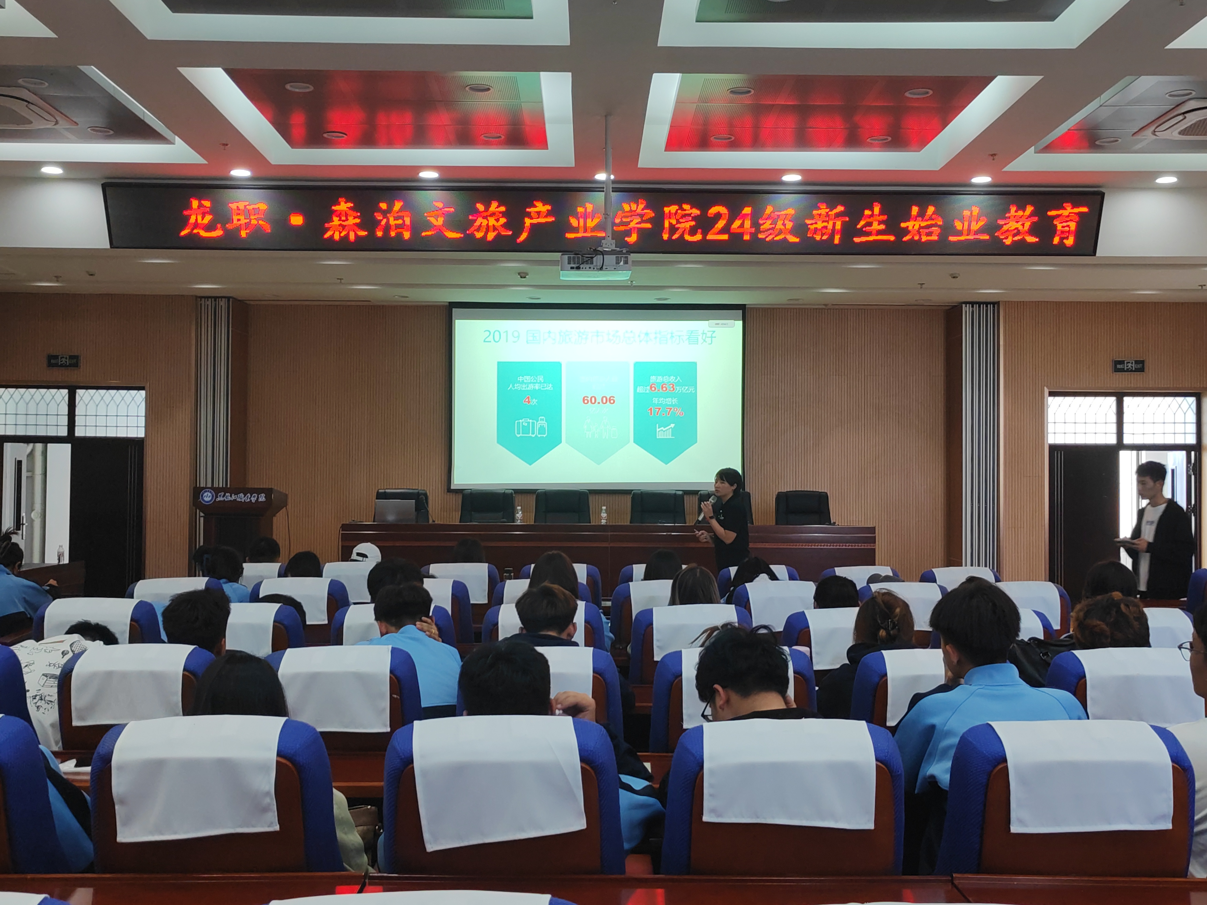 为了全面推进人才培养工作的高质量发展,通过始业教育提升学生对文旅行业和专业特色的认知,培养同学们的职业意识,2024年9月24日下午,龙职·森泊文旅产业学院开展了24级新生始业教育。杭州开元森泊管理公司的招聘总监吴燕、招聘经理牟少康来金年会为24级旅游管理专业同学做了始业教育讲座,旅游管理专业教师以及23级部分同学一同参加了本次讲座。